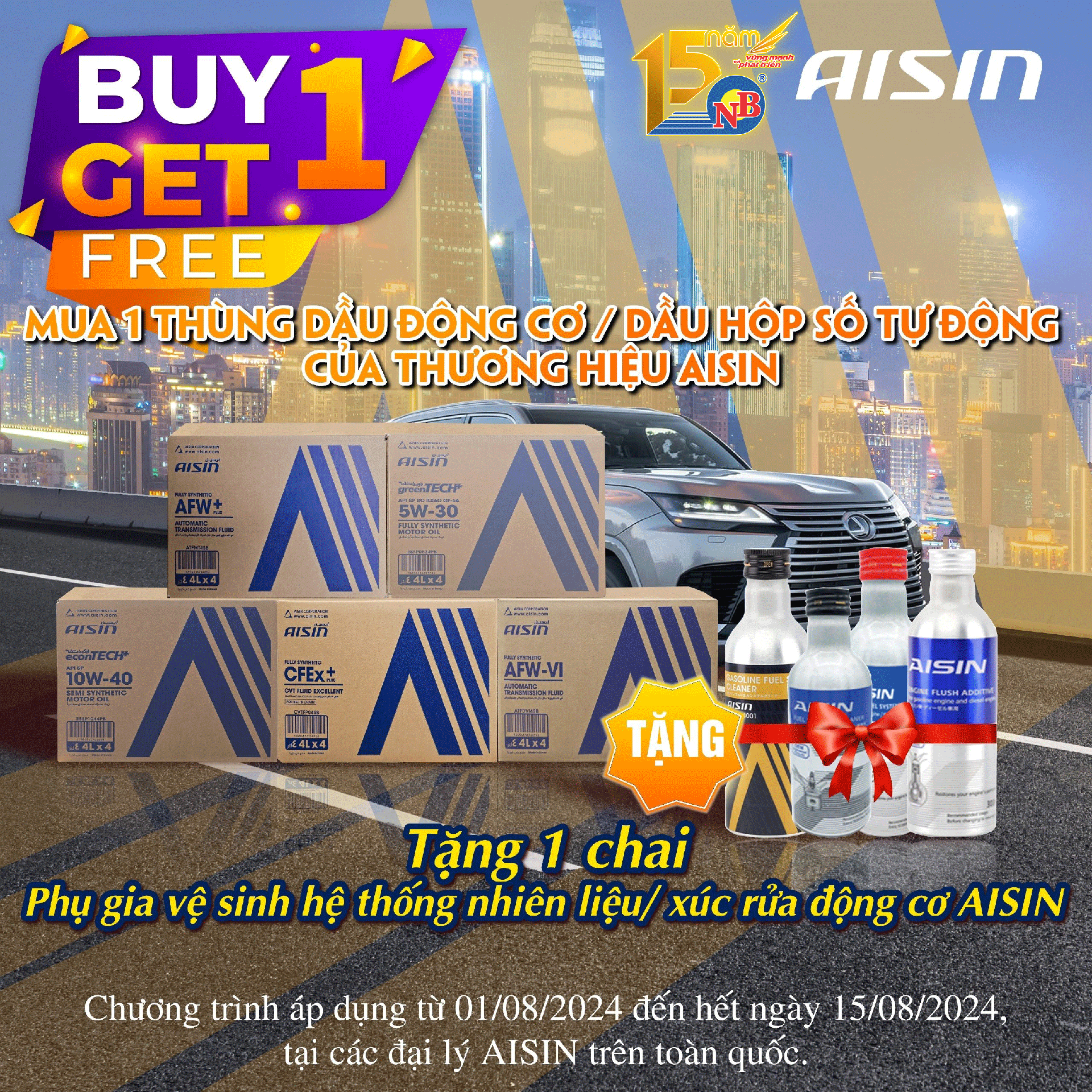 MUA 1 thùng nhớt AISIN bất kỳ TẶNG 1 chai phụ gia cao cấp AISIN